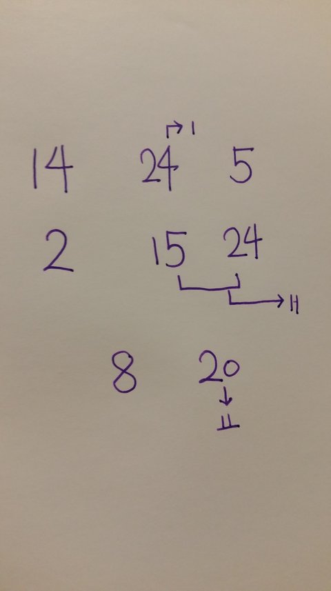 고3인데 어느날부터 누가 계속 선물과 쪽지를 사물함이나 가방에 넣어놓더라구요......그런데 쪽지를계속 숫자암호를 적어놔서요ㅠㅠㅠㅠㅠ 전에 받은것들은 쉬운암호들이라 풀엇는데 이번건 너무어려워요....도와주세요!!!!제발!!!!!ㅠㅠㅠㅠㅠ