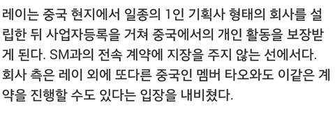 SM이 타오도 개인 회사 허락 할수 있다고