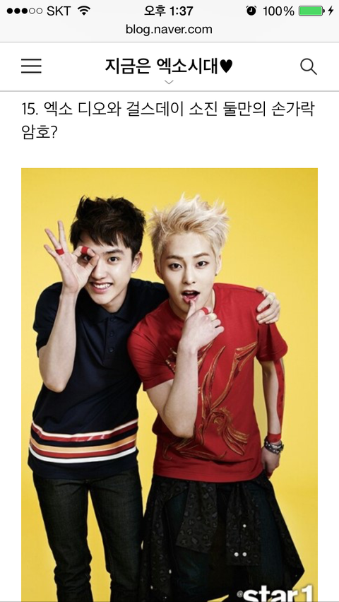 첫번째! 디오 소진 주장 하는 분들이 가져 오시는 증거. 일명 둘만의 손가락 암호!