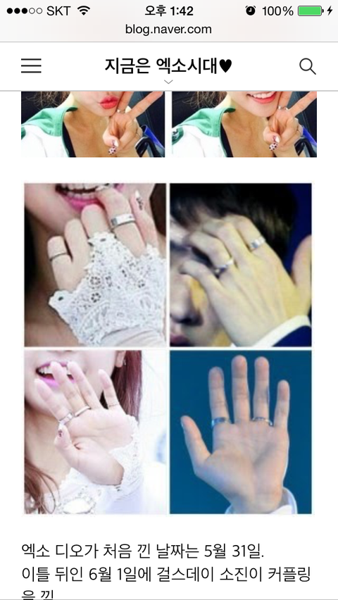 근데 이반지는 찬열이와 둘의 우정반지로 낀것입니다... 근데 찬열 디오의 우정반지를 안믿으시더라고요.. 그냥 우연히 둘이 같은반지 산거다! 라고 하시더라고요ㅎㅎ