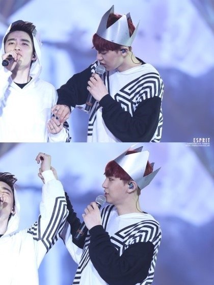 그래서 이 자신을 준비했어요. 이 사진은 찬열이가 디오랑 같이 맞췄다고 디오 송을 들어올리면서 말하는 장면 입니다! 이오써 둘의 우정반지라는것은 인증 됬습니다ㅎㅎ