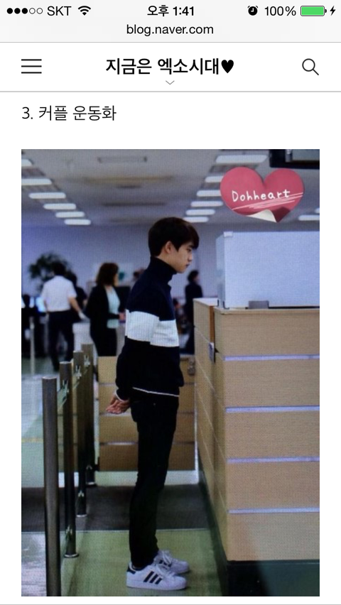 오세훈과 변백현도 신었습니다! 엑소의 많은 멤버들이 아디다스를 애용하는데요, 그런 운동화를 커플운동화로 몰아가다니ㅋㅋㅋㅋㅋㅋ 디오소진 증거 만드시는분들 참 할짓 없어 보이네요ㅎㅎ