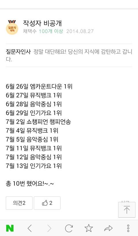 음방트로피 기록이 최대10개였어?