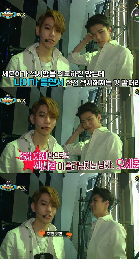 백현이한테 칭찬받고 기분 좋은 세훈이