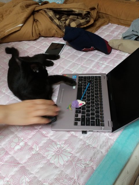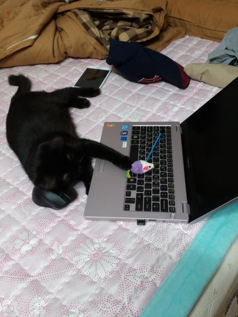 컴퓨터 옆에서 놀아달라는 꾀돌이..