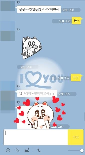 속으로 반갑기도 하고 좋더라구... 그래도 정색하고 대했는데 말끝마다 저렇게 하트 이모티콘을 사용한다.