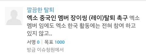 다음 아고라에 장이씽 탈퇴 청원 만들었다