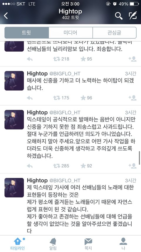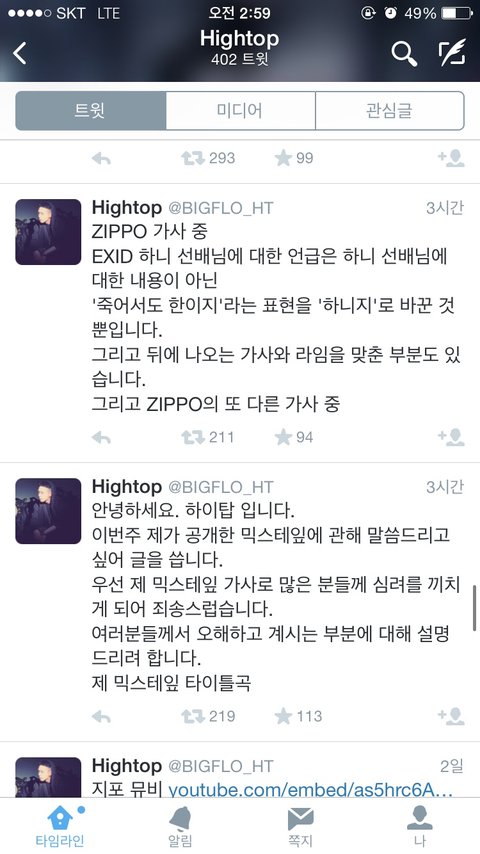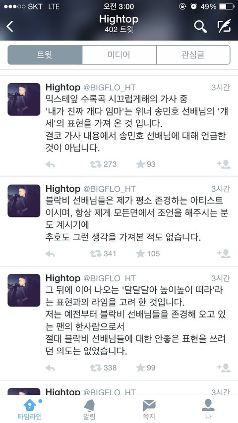 빅플로 멤버 하이탑이 믹테를 냈는데 블락비랑 엑소 저격했네요 ~~표절의혹에 이어 저격까지 대단하네요 ㅇㅅㅇ
