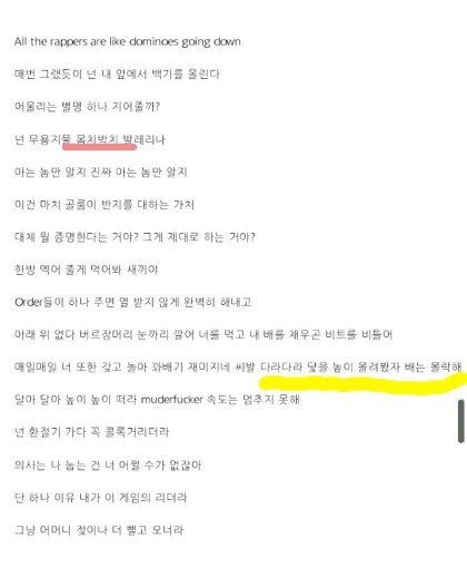 여기애는 없지만 하이탑이 빅뱅을 롤모델이다 뭐다 라고 말했는데 GD를 디스 하는 가사도 봤습니다.