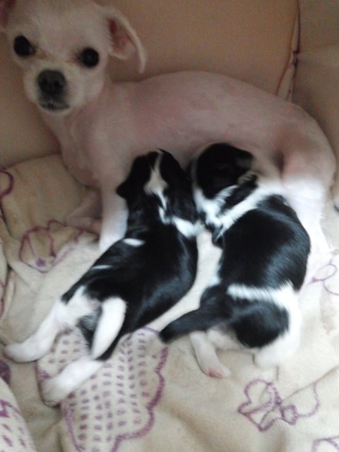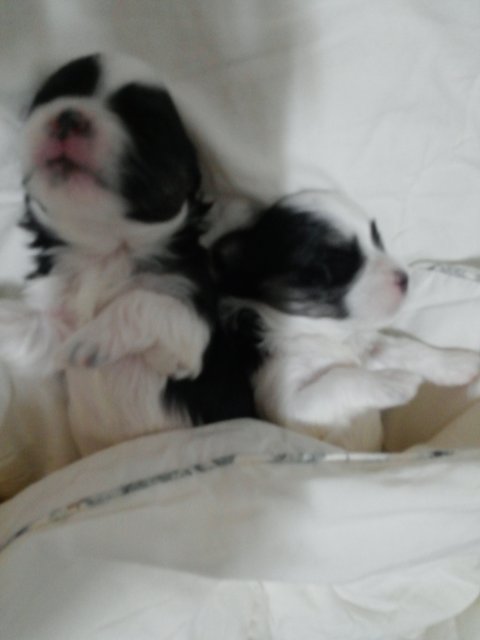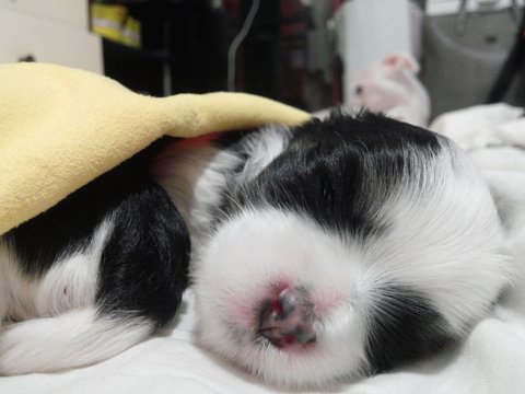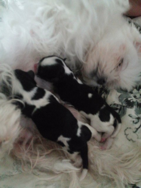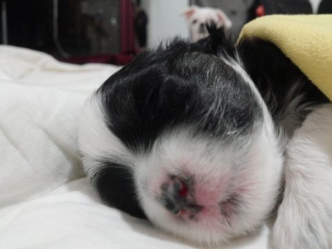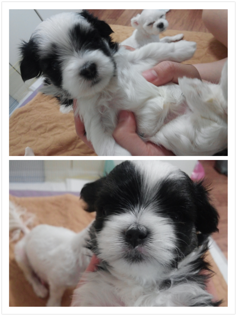 아빠가 시츄였더군요 ㅎㅎ 하안 쪼꼬한테서 흑백아이들이 태어나서 깜짝 놀랬어요~