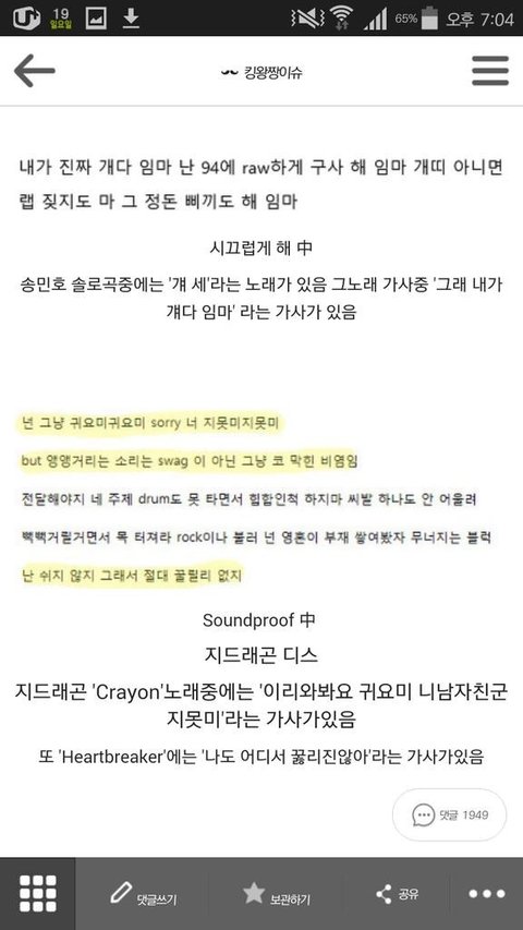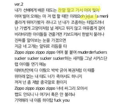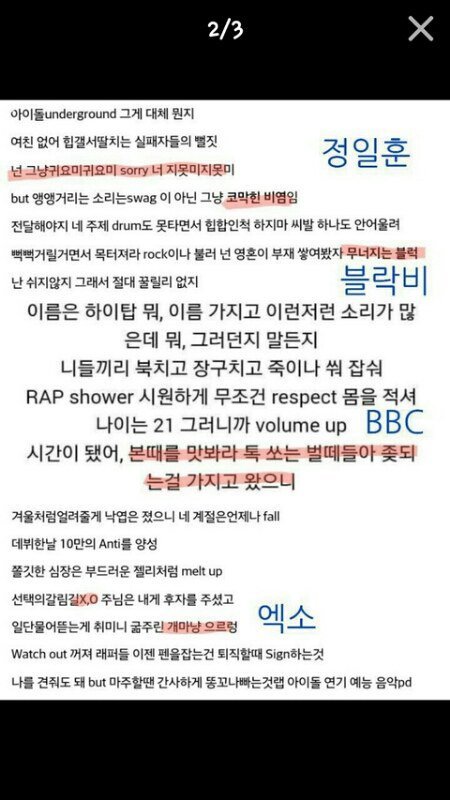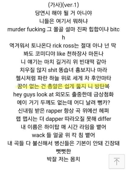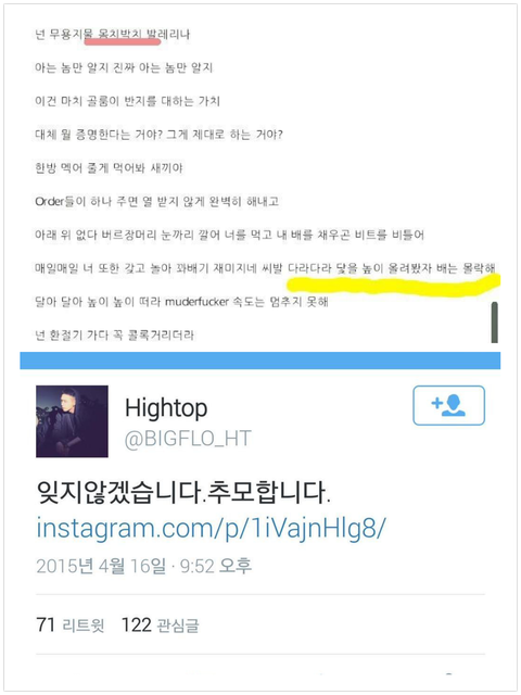 이번에 빅플로의 하이탑이 위에 가수들 디스함...