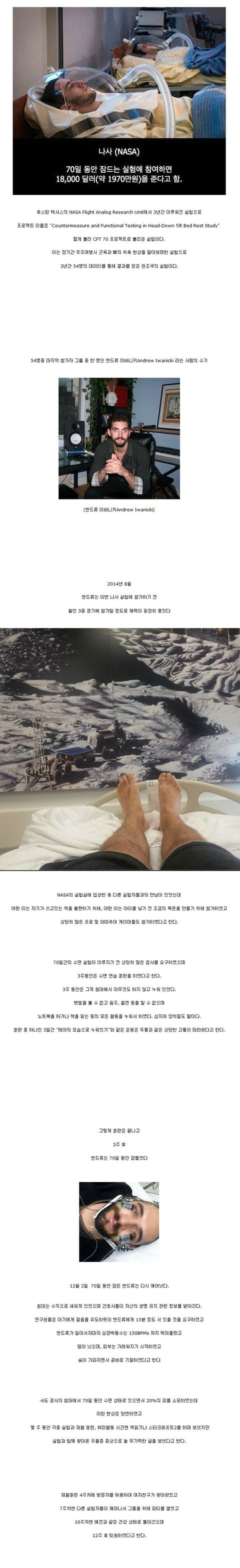 접때도 말했지만 당연한거임 70일동안 잠만자는데 근육이 정상이겠음? 입에 들어가는 고형물도 없는데? . 철인3종 경기나가려면 체력인짜 괴물이어야함ㅋ 그런사람이 실험후 서있다가 기절 ㅋㅋ