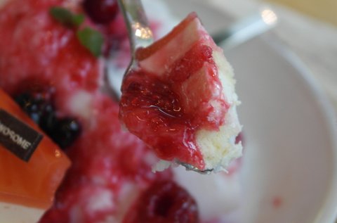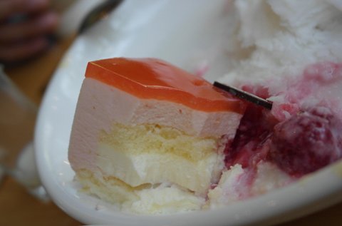 케이크빙수의 느낌은 두가지의 디저트를 한번에 즐길수있어서 좋다