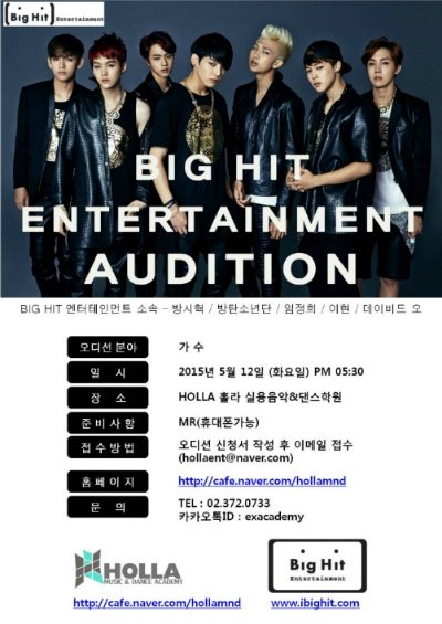 big hit 엔터테인먼트 소속사 오디션 - 방시혁/방탄소년단/임정희/이현/데이비드오