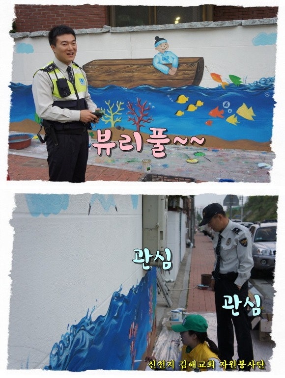 담벼락을 지나가시던 경찰아저씨도 아름다운 담벼락으로