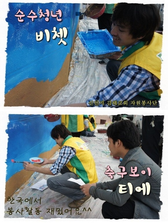 외국인 친구들과 한글 공부도 하고 벽화봉사도 한답니다.