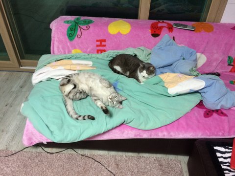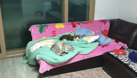 아빠가 퇴근하고 들어오면 문앞까지 마중나가던 녀석들이 그대로 누워있네요