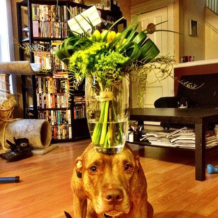 물론뭐웃으라고 올린거겠지만 썩보기좋진않은데ㅋ 동물 가지고장난치는거같고.. 타이어나 노트북같은건 이마나 코에 올리기 무거워서 막상 저 개는 고통스러울지도