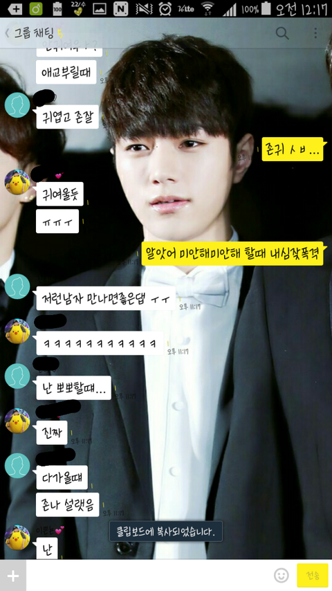 내가 토요일에 나홀로연애중 찬열편보고 진짜 죽는줄알았거든 보니까 내친구 타팬인애들 다 찬열한테 빠짐 내가원래 인슾인데헠헠캌ㅋ 명수팬이란말임 진짜 뻥안치고 명수랑 찬열이랑 가요대제전때 친구먹은거 이제기억나서 진짜 너무 조타♡