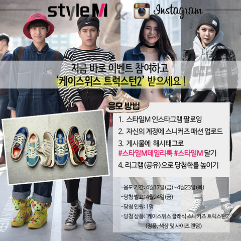 스타일M 인스타그램 팔로잉하고 스니커즈를 활용한 데일리룩을 자랑해주세요!