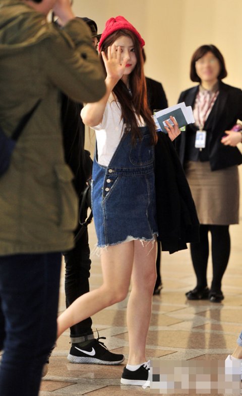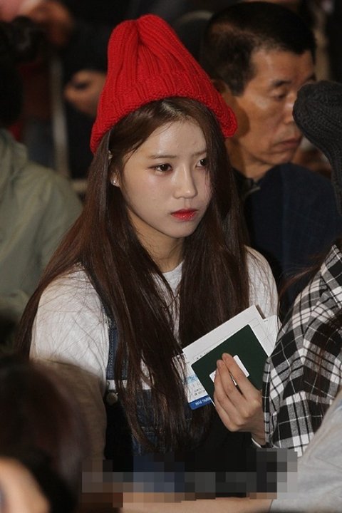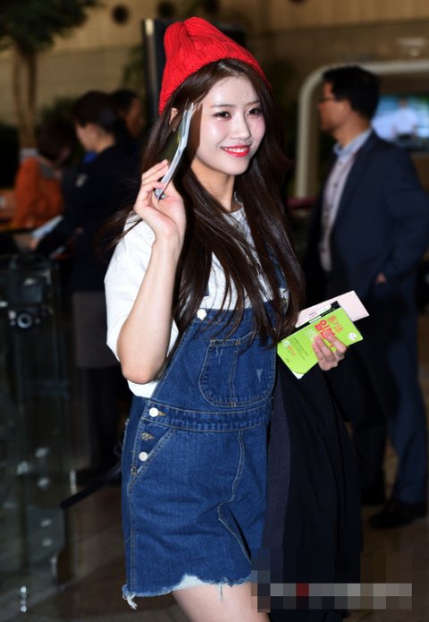 멜빵치마 입고 출국중인 러블리즈의 이미주