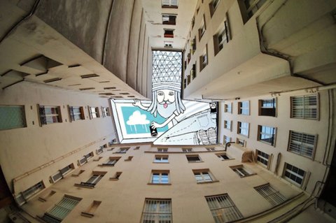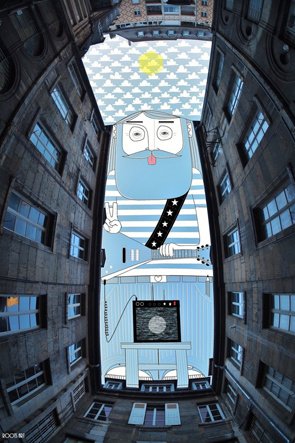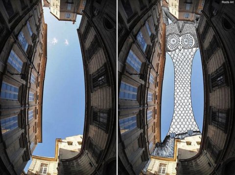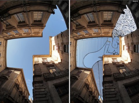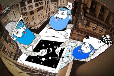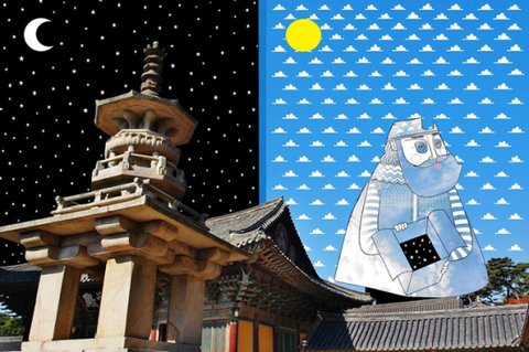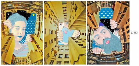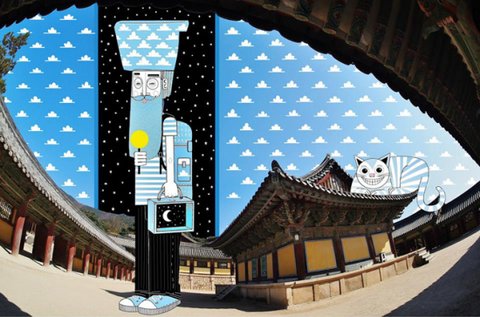 하늘 사진을 촬영하고 하늘 여백을 채우는 독특한 작품들을 그려냄