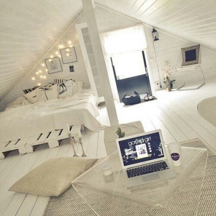 5. 깔끔한 화이트 방 천장은 다락방의 느낌