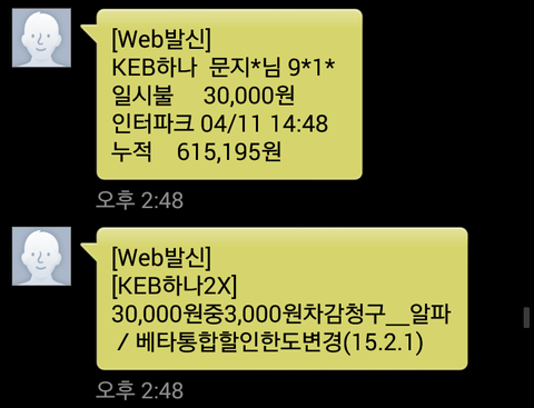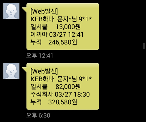 그 전까지는 제가 쓰던 카드라 문자가 제 핸드폰으로 오게 되어 있었구요