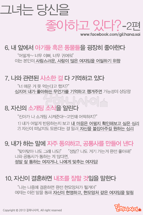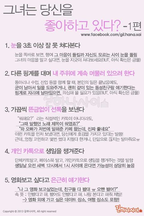 그녀가 당신을 좋아한다는 신호들....