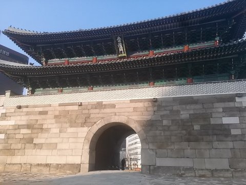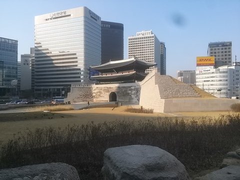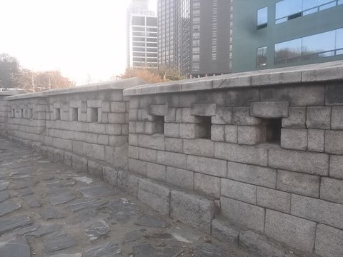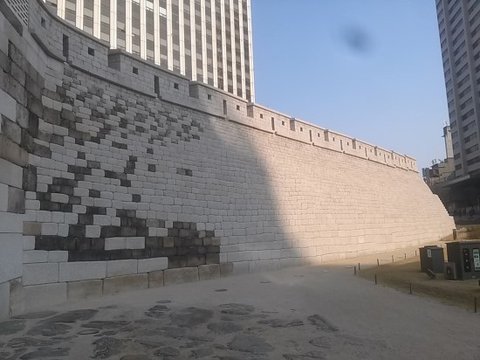 숭례문 옆으로 성벽의 일부가 복원되어 있습니다.