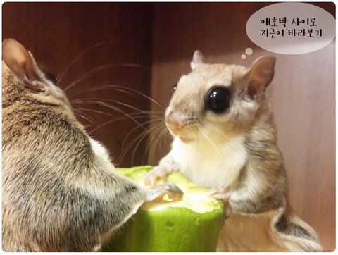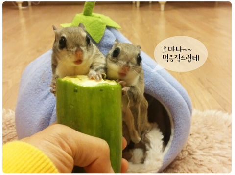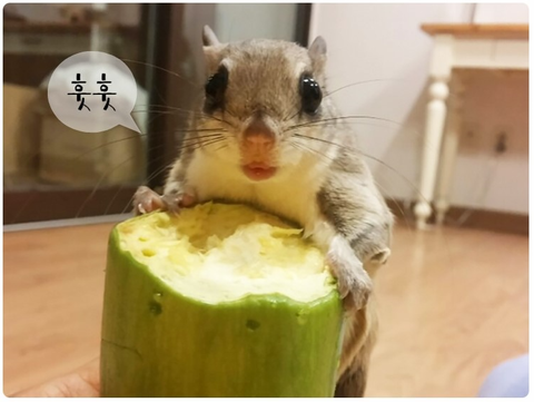 하늘다람쥐에게도 애호박을 통째로 줘봤답니다 ㅎㅎ