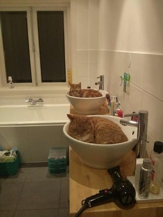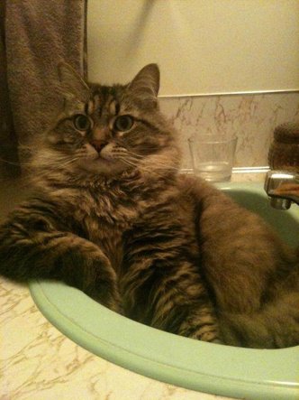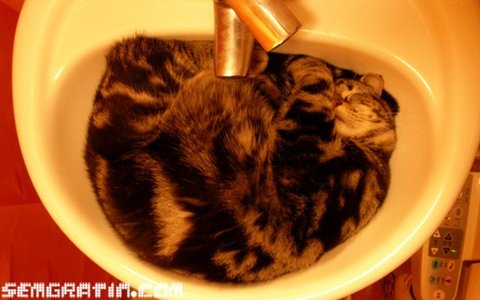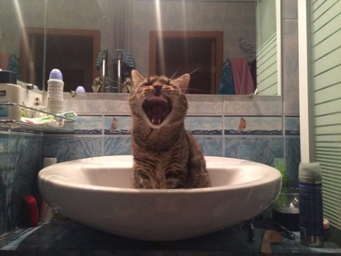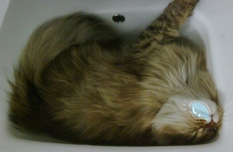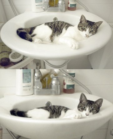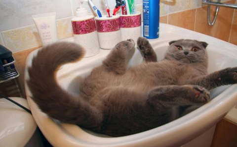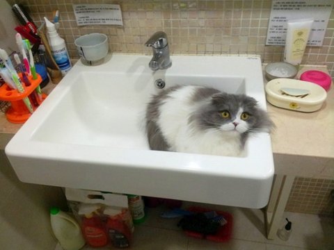 세면대와 사랑에 빠진 고양이