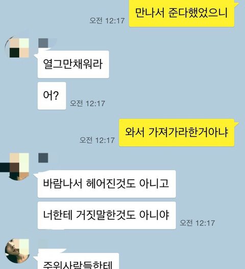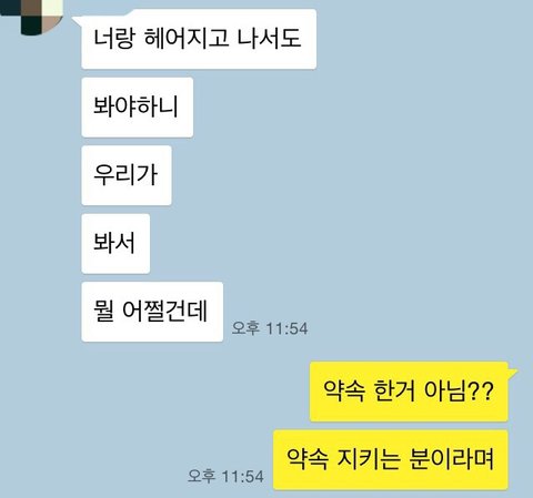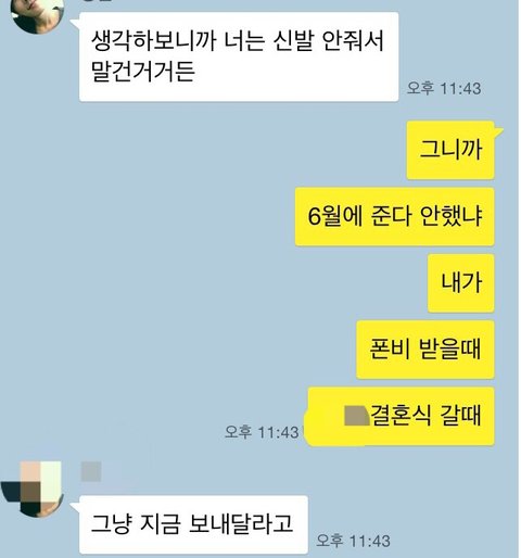 택배로 붙이면 안 만나줄까바 못 부치겠냐고 하네요 기가차서... 욕한번만 더하면 차단 하겠다고 했더니 재미없다 잔다 빠2.....유치한 저런 인사에 우리 3년 사귄 사이 맞죠???