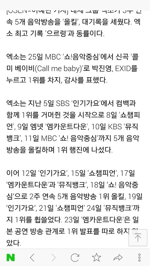뮤뱅 음중 인가 쇼챔 모두 트리플크라운 달성했고 엠카는 두번이지만 저번주엔 1위발표가 없었자나 사실상 모든 음방 트리플크라운이라고 봐야맞겠지 우리 엑소 이번컴백활동 성공적이다ㅋㅋ 종인아 트리플크라운 올킬한거 축하해