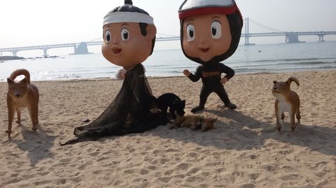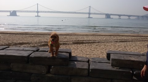 오늘에 우리 대박이(7살된 믹스견),우리 럭키(5개월된 블랙슈나우져) 우리아가들과 광안리갔다왔어요.어제에 어방축제가 끝나서 몇가지 시설물들이 있어서,사진도 찍고,모래사장도 달리고 럭키는 강아지동상보고 어찌나 짖던지 ㅋㅋ 큰강아지한테 짖고 새끼강아지한테도 짖고 너무귀엽죠.광안대교도 보이죠.전부산에 이사온지 9년됬는데 부산너무좋네요.대박이랑 럭키사진 종종올릴께요.요건 대박이랑 럭키집이에요.빨리돈벌어서 이사가야겠어요.타워펠리스로.ㅋㅋ