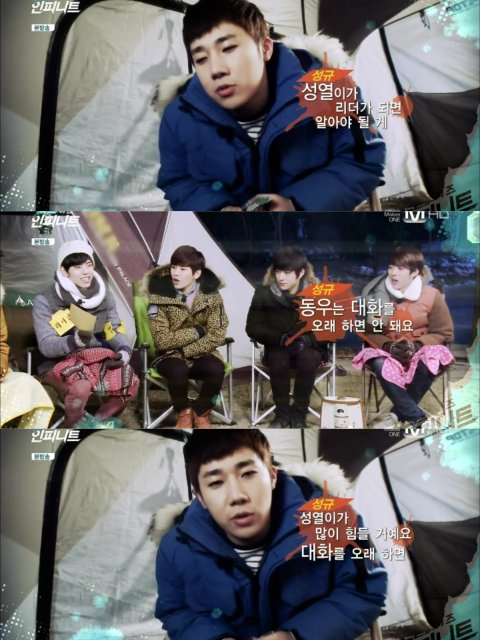 디스이즈인피니트 1화에서 리더를 다시 뽑았는데 체력에서 성열이가 너무 리더로서 잘해줘서 멤버들이 리더를 다시 뽑는다면 성열로 뽑았는데... ㅎㅎ