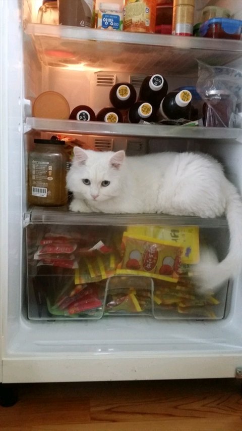 작년 여름에 찍은 사진 .냉장고를 열때마다 틈나는대로 들어가있던곳.이사가면 냉장고 큰걸로 바꿀꺼임 ㅋㅋㅋ