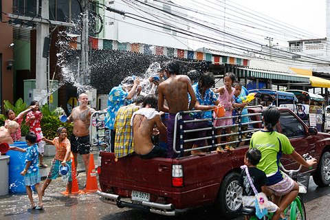 물을 뿌리는 행위는 불교국가에서 부처의 축복을 기원하려고 불상을 정화하는데서 유래했다고 합니다.나쁜 운과 죄를 씻어주는 의미 + 축복의 의미에서 물을 뿌린대요.