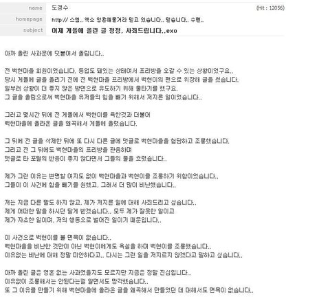 타멤커뮤에서 걸려서 사과문쓴 됴줌ㅋㅋㅋ