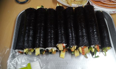 - 봄나들이용 김밥입니다. 엄청나게 만들었어요.. 김밥을 잘 말지 못하여 고생한 생각이 나네요 전 개인적으로 김밥에는 꼭 매운오뎅과 우엉이 들어간 김밥을 좋아하지만... 이건.. 매운오뎅이 아님... ㅜㅜ