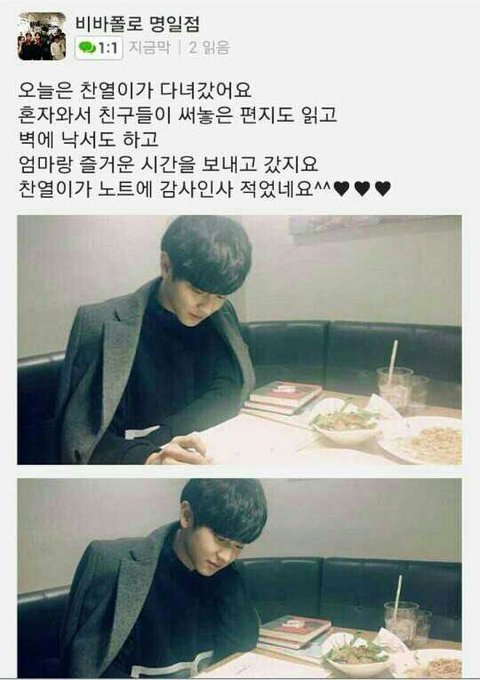 찬백커플 찬열 어머니가 직접 쓴 멘트임
