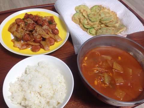 소고기국과 호박전 소세지야채볶음!