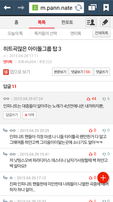 심심해서 이런댓글 달았었는데 사실 반대 엄청있을줄 알았거든ㅋㅋㅋ근데 추천이되게 많아서 놀람 너희들도 인정하는구나 나인슾맞아 근데 좀 슬프지않아? 다른 아이돌들은 유명한곡들 많은데 인피니트는 진짜 대중들이 알아주는 노래가 4년전에 나온 내꺼하자뿐이야 ㅜ 가끔 예능나와서 인피니트 소개해줄때 최근에나온 노래들도 있는데 내꺼하자 영상같은거만 띄워줄때도 뭔가좀속상하더라 좀오바하자면 인피니트는 2011년에서 멈춘건가 이런생각도들고