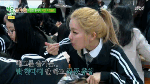배고파서 손으로 먼저 먹는데 입모양좀 냅둬라 슬기야 쥬글꺼 같으니깐ㅠㅠㅠ