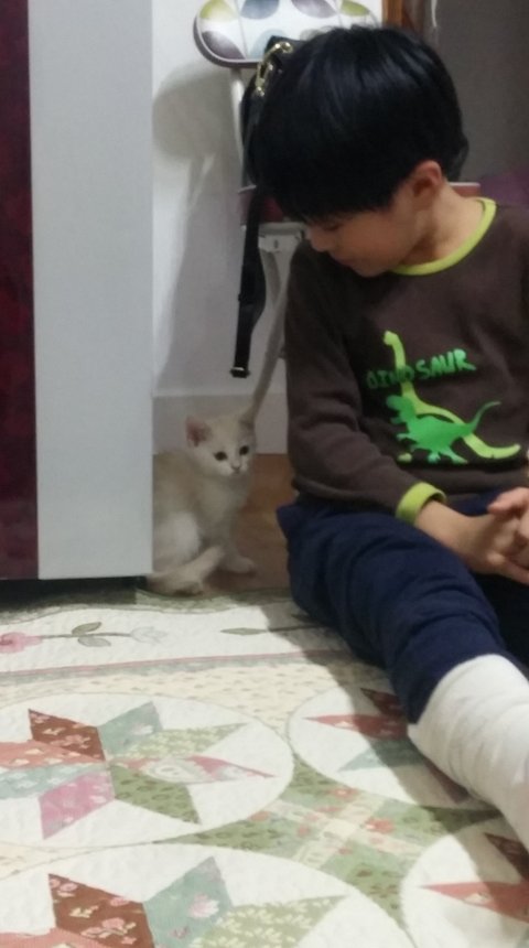 지그시 모찌를 바라보는 아들이 사랑스러워서 찍어봤어요
