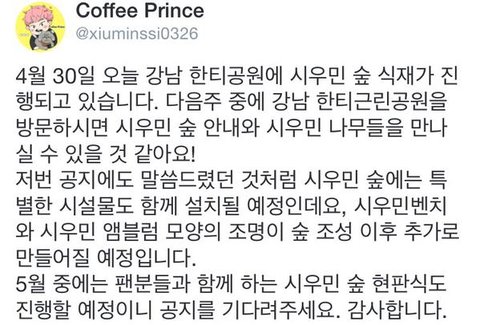 강남한티근린공원에 시우민숲 카밍쑤운!