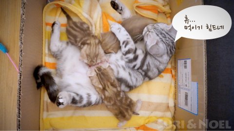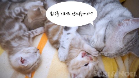 .....(그렇게 시간이 잠시 흘러가고,,,,,)...........사태의 심각성을 깨달은 세 꼬물이들이 드디어 젖을 먹습니다.