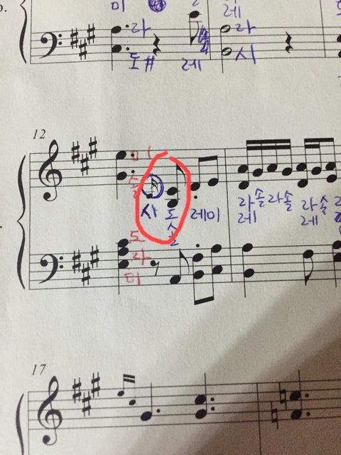 동그라미 친데 계이름좀..