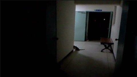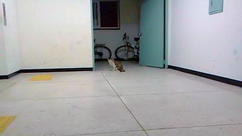나가 보았더니 길고양이 람쥐가 엘리베이터쪽으로 도망가길래 천천히