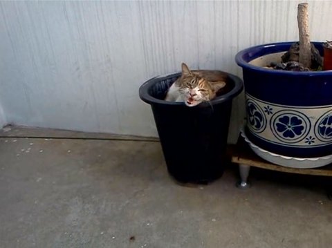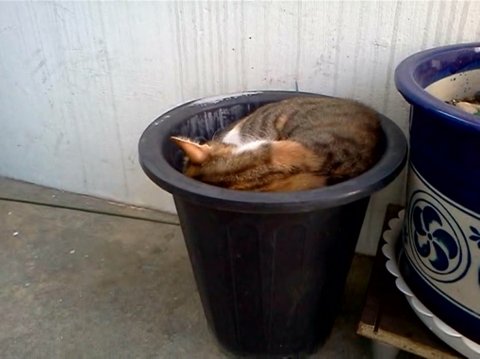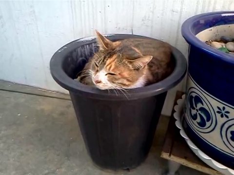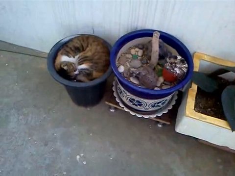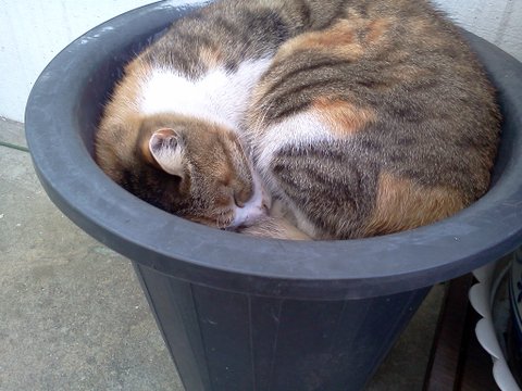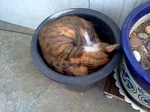 자세히 보니 화분 안쪽에 들어가 웅쿠리고 잠을 자고 있었나 봅니다.
